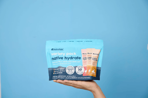 NativePathβs Hydrate drink mix is made with 100% clean Ingredients, zero sugar, and high bioavailability. It includes essential mineralsβlike sodium, potassium, chloride, magnesium, and calciumβthat are vital to many key functions in the body, along with Amino Acids to enhance muscle recovery and all 9 essential amino acids.